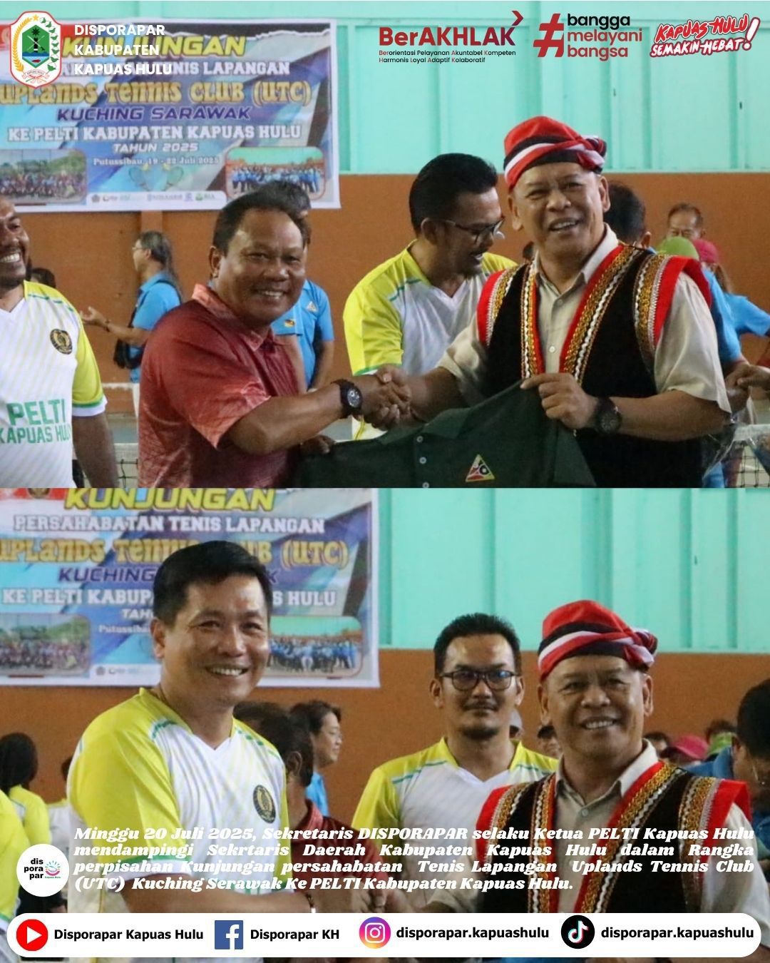 Dinas Kepemudaan olahraga dan Pariwisata Kabupaten Kapuas Hulu mengikuti aksi bersih dalam rangka kedatangan lawatan Permanent Secretary Ministry of Transport Sarawak ke Kabupaten Kapuas Hulu.