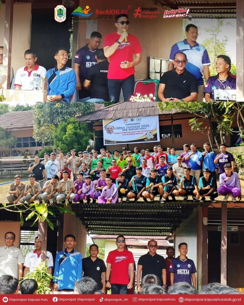 Kapuas Hulu – Pelaksana Tugas (Plt.) Kepala Dinas Kepemudaan, Olahraga dan Pariwisata (Disporapar) Kabupaten Kapuas Hulu, Ade Hermanto, S.K.M., M.A.P., secara resmi membuka Open Tournament Sepak Takraw yang diselenggarakan oleh Persatuan Sepak Takraw Indonesia (PSTI) Kabupaten Kapuas Hulu.